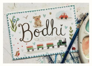 Your Pretty Name Picture will be painted on high quality, thick card, using soft and delicate watercolour and gouache paints, with a touch of sparkle detail.